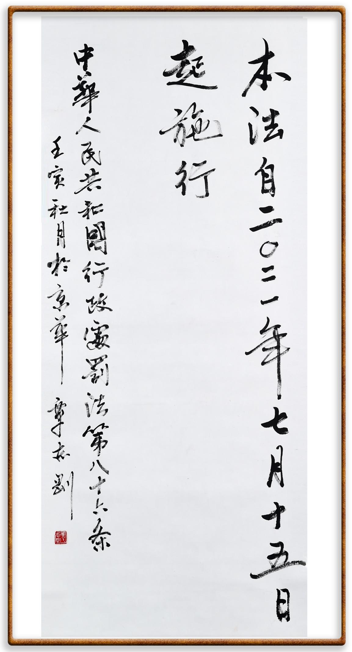 繼《中華人民共和國民法典》《中華人民共和國土地管理法》《中華人民共和國土地管理法實(shí)施條例》《中華人民共和國法律援助法》之后,法治日?qǐng)?bào)社聯(lián)合北京市司法局、北京書法家協(xié)會(huì),將筆端對(duì)準(zhǔn)《中華人民共和國憲法》和《中華人民共和國行政處罰法》。