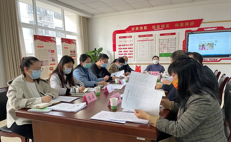 圖為合肥市包河區(qū)方興社區(qū)協(xié)商議事廳里相關(guān)工作人員正在進行問題討論。