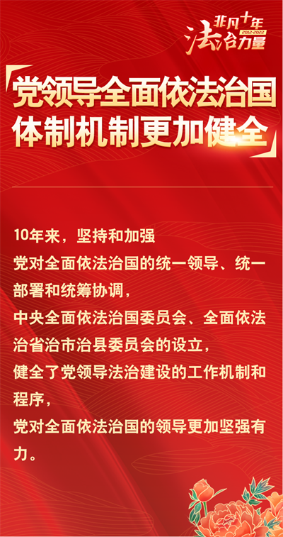 法治網(wǎng)精心策劃制作十期海報(bào),帶您一起領(lǐng)略非凡十年的法治力量!今天為您奉上第二期“黨領(lǐng)導(dǎo)全面依法治國(guó)體制機(jī)制更加健全”。