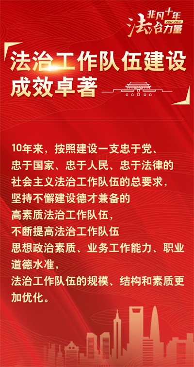 法治網(wǎng)精心策劃制作十期海報(bào),帶您一起領(lǐng)略非凡十年的法治力量!今天為您奉上第十期“法治工作隊(duì)伍建設(shè)成效卓著”。