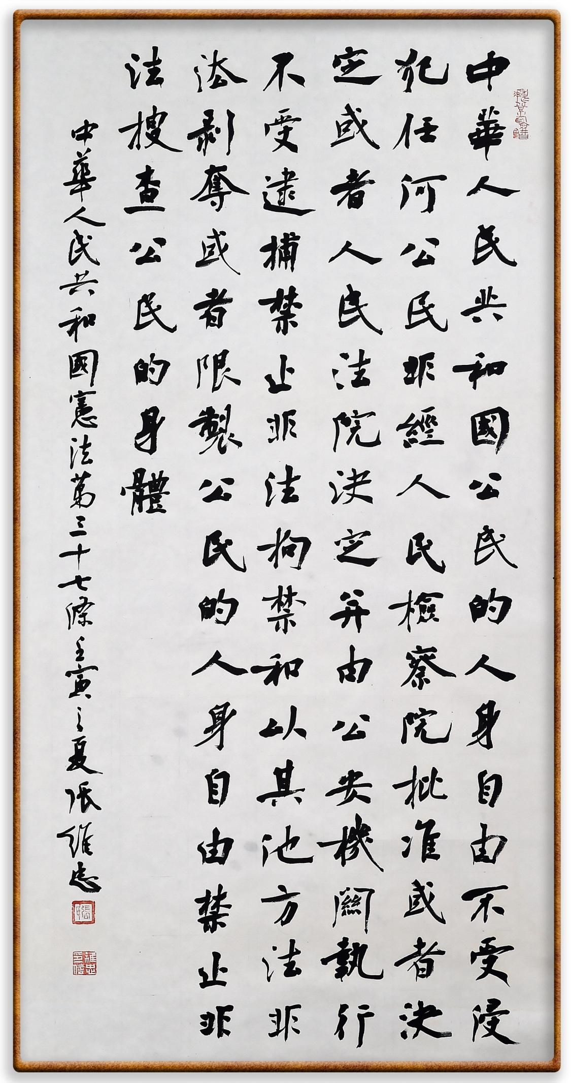 繼《中華人民共和國民法典》《中華人民共和國土地管理法》《中華人民共和國土地管理法實施條例》《中華人民共和國法律援助法》之后,法治日報社聯(lián)合北京市司法局、北京書法家協(xié)會,將筆端對準《中華人民共和國憲法》和《中華人民共和國行政處罰法》。