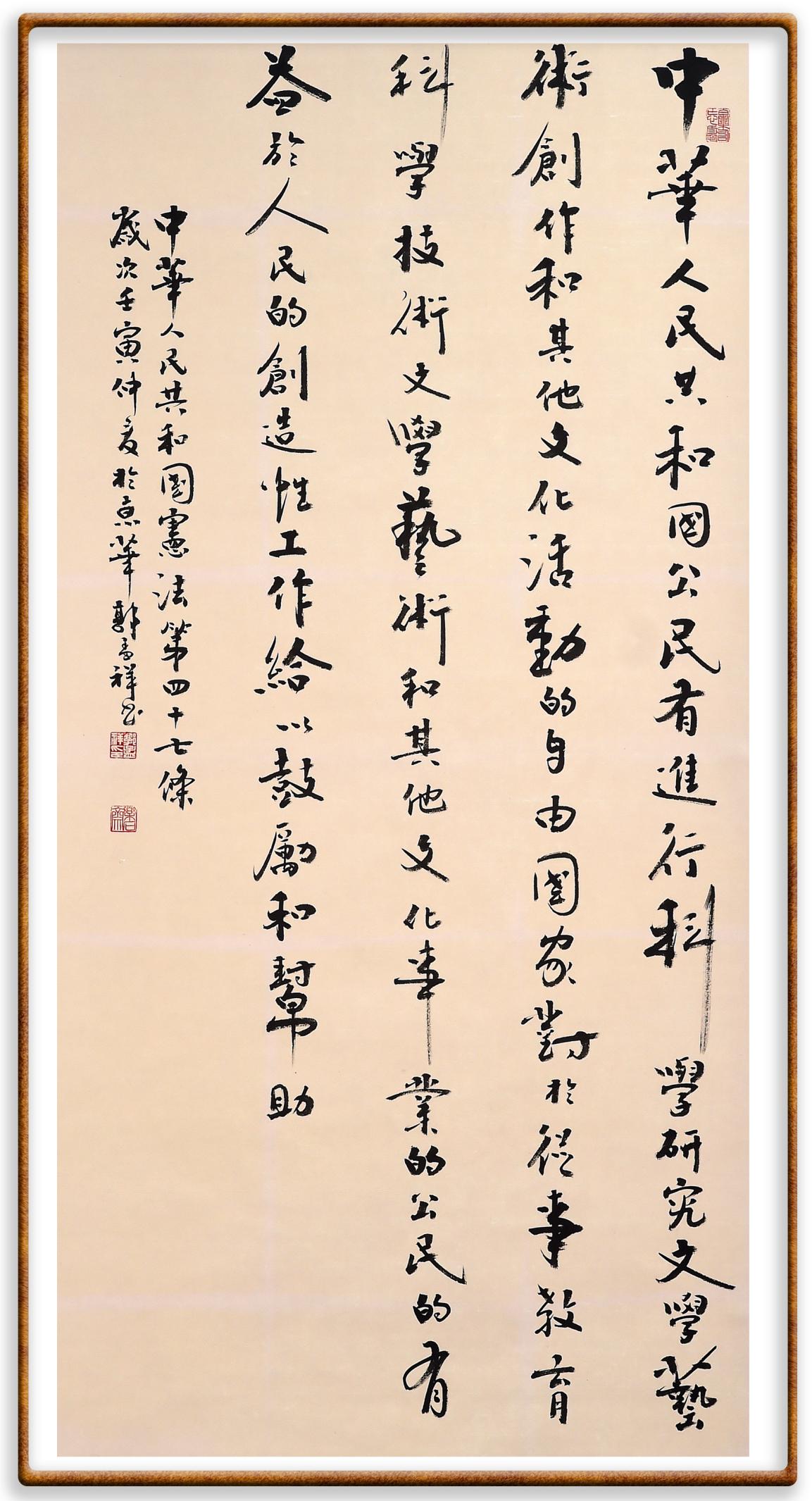 繼《中華人民共和國民法典》《中華人民共和國土地管理法》《中華人民共和國土地管理法實施條例》《中華人民共和國法律援助法》之后,法治日報社聯(lián)合北京市司法局、北京書法家協(xié)會,將筆端對準《中華人民共和國憲法》和《中華人民共和國行政處罰法》。