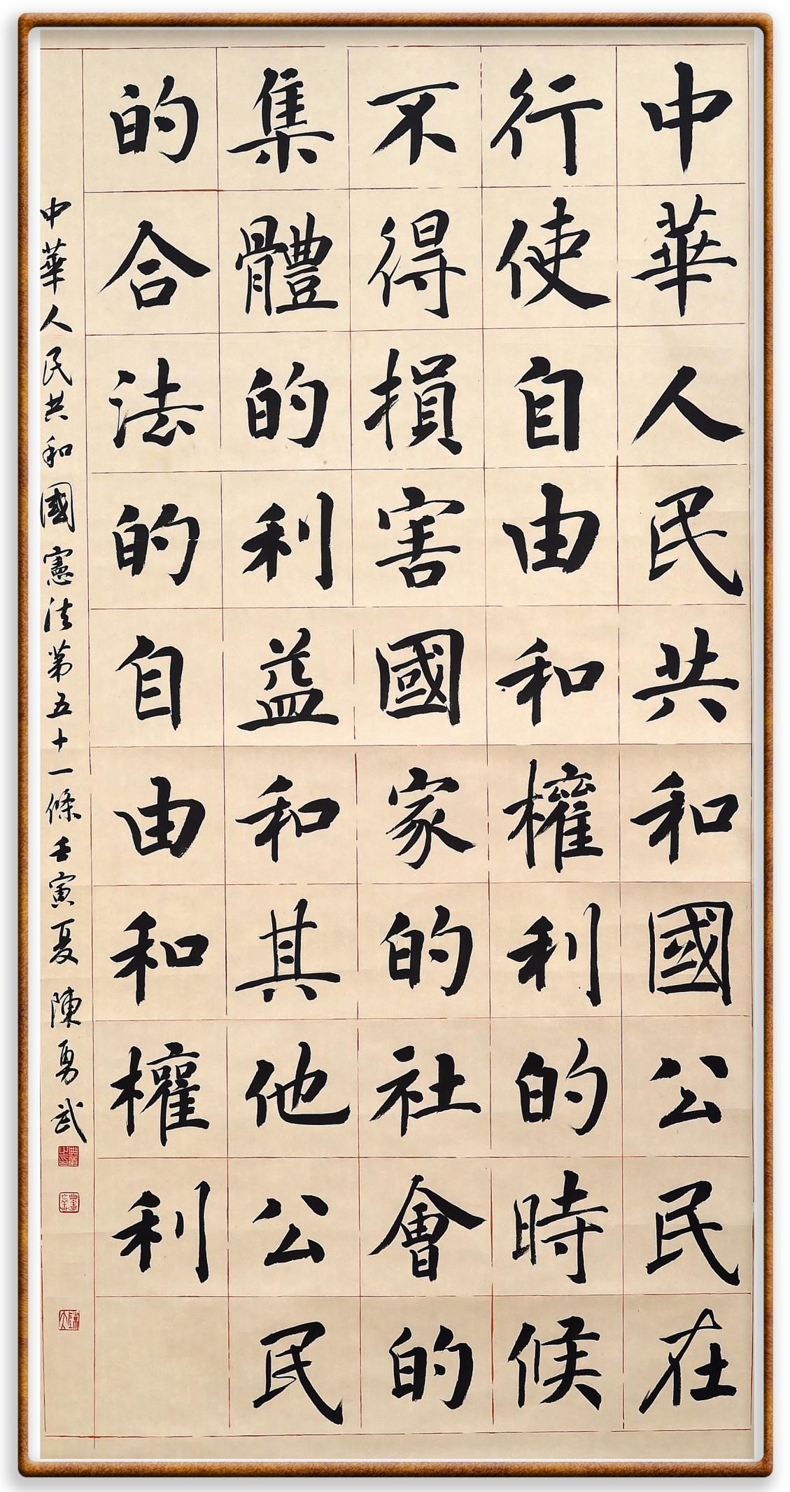 繼《中華人民共和國民法典》《中華人民共和國土地管理法》《中華人民共和國土地管理法實(shí)施條例》《中華人民共和國法律援助法》之后,法治日報(bào)社聯(lián)合北京市司法局、北京書法家協(xié)會,將筆端對準(zhǔn)《中華人民共和國憲法》和《中華人民共和國行政處罰法》。